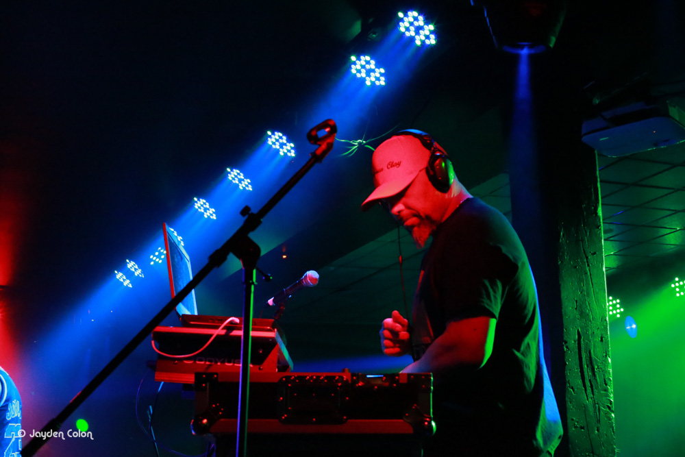 The DJ at a February 2023 Apathy concert in Manchester, New Hampshire plays a set between acts. Photo by Jayden Colon ’23.