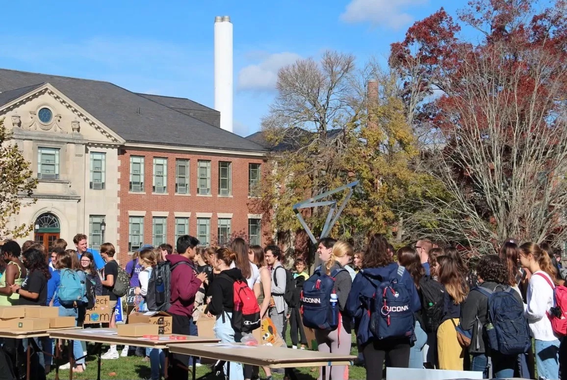 On Nov. 4, 2022, over a hun­dred stu­dents gath­ered out­side the Stu­dent Union Lawn to hear activists, politi­cians and fel­low stu­dents about “decar­boniz­ing” UConn. They ral­lied against the use of fos­sil fuel ener­gy at the uni­ver­si­ty and spoke about reach­ing car­bon neu­tral­i­ty by the next 10 to 20 years. Eco­Husky Pres­i­dent Chase Mack, orga­niz­er of the Fos­sil Fuel Free UConn coali­tion which helped formed the ral­ly, joined me today to talk more about the stu­dent momen­tum and future of UConn’s ener­gy sourc­ing.
